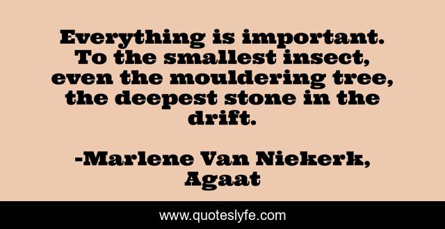 "Marlene Van Niekerk, Agaat Quotes." Quoteslyfe.com, 2025. Fri. 05 Dec. 2025. <https://www.quoteslyfe.com/quote/Everything-is-important-To-the-smallest-insect-72405>.