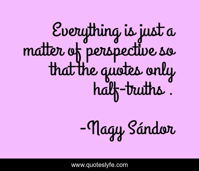 This page presents the quote "Everything is just a matter of perspective so that the quotes only half-truths .". Author of this quote is Nagy Sándor. .