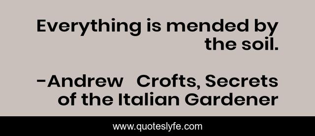 "Andrew Crofts, Secrets of the Italian Gardener Quotes." Quoteslyfe.com, 2025. Sun. 07 Dec. 2025. <https://www.quoteslyfe.com/quote/Everything-is-mended-by-the-soil-138611>.