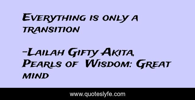 "Lailah Gifty Akita, Pearls of Wisdom: Great mind Quotes." Quoteslyfe.com, 2025. Sat. 06 Dec. 2025. <https://www.quoteslyfe.com/quote/Everything-is-only-a-transition-85569>.