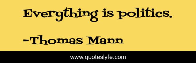 This page presents the quote "Everything is politics.". Author of this quote is Thomas Mann. .