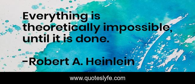 This page presents the quote "Everything is theoretically impossible, until it is done.". Author of this quote is Robert A. Heinlein. This quote is about impossible, done, everything,.
