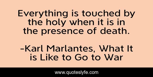 This page presents the quote "Everything is touched by the holy when it is in the presence of death.". Author of this quote is Karl Marlantes, What It is Like to Go to War. This quote is about death, war, holy-spirit,.