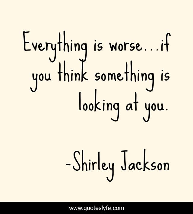 This page presents the quote "Everything is worse...if you think something is looking at you.". Author of this quote is Shirley Jackson. This quote is about haunting, fear, horror, ghosts, monsters,.