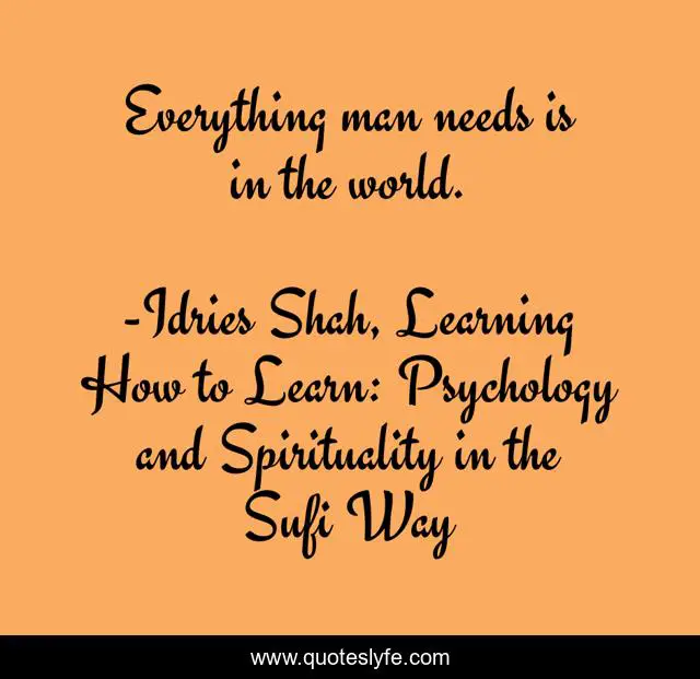 "Idries Shah, Learning How to Learn: Psychology and Spirituality in the Sufi Way Quotes." Quoteslyfe.com, 2025. Sat. 06 Dec. 2025. <https://www.quoteslyfe.com/quote/Everything-man-needs-is-in-the-world-203369>.
