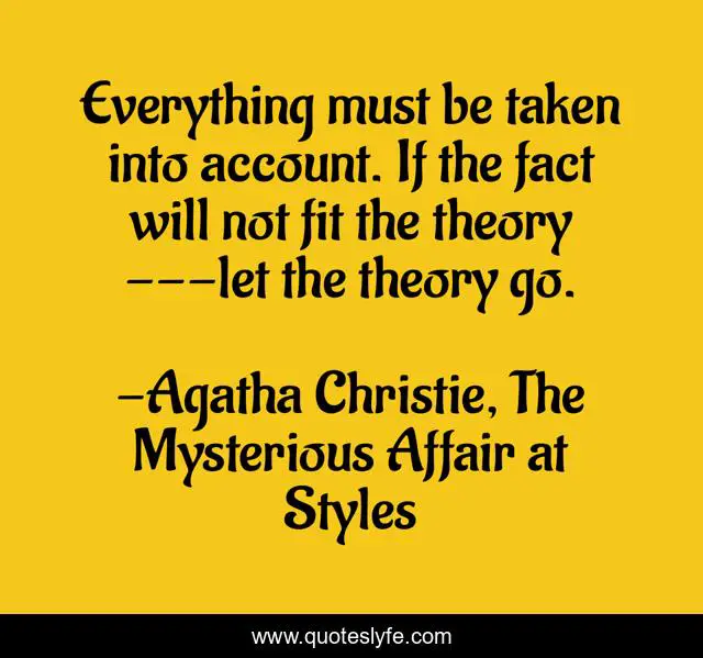 "Agatha Christie, The Mysterious Affair at Styles Quotes." Quoteslyfe.com, 2025. Fri. 05 Dec. 2025. <https://www.quoteslyfe.com/quote/Everything-must-be-taken-into-account-If-228847>.