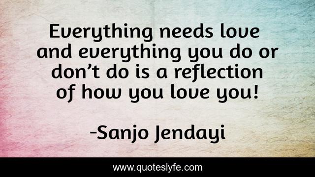 This page presents the quote "Everything needs love… and everything you do or don’t do is a reflection of how you love you!". Author of this quote is Sanjo Jendayi. This quote is about sanjo-jendayi, affection, love, reflection, deserie-johnson,.