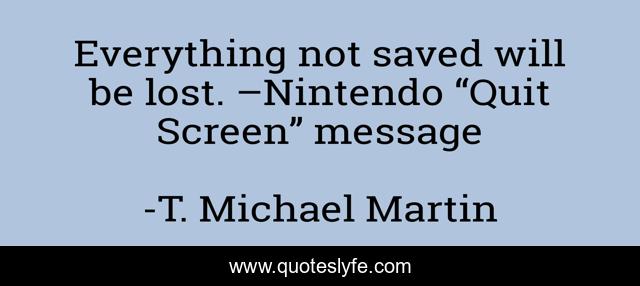 "T. Michael Martin Quotes." Quoteslyfe.com, 2025. Mon. 08 Dec. 2025. <https://www.quoteslyfe.com/quote/Everything-not-saved-will-be-lost-Nintendo-156292>.