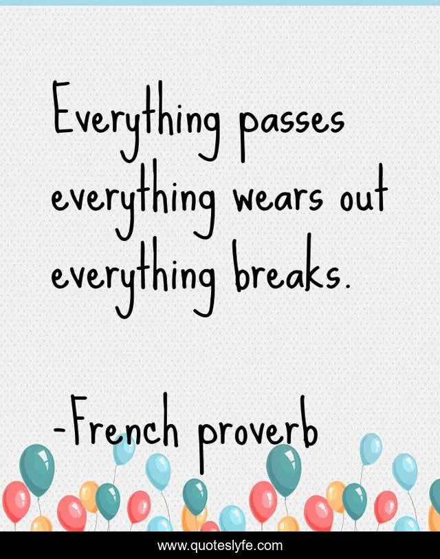 This page presents the quote "Everything passes everything wears out everything breaks.". Author of this quote is French proverb. .