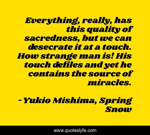 "Yukio Mishima, Spring Snow Quotes." Quoteslyfe.com, 2025. Fri. 05 Dec. 2025. <https://www.quoteslyfe.com/quote/Everything-really-has-this-quality-of-sacredness-100607>.