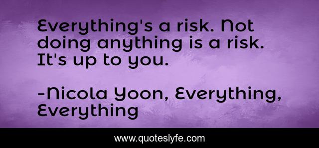 This page presents the quote "Everything's a risk. Not doing anything is a risk. It's up to you.". Author of this quote is Nicola Yoon, Everything, Everything. This quote is about enthusiasm, inspirational,.