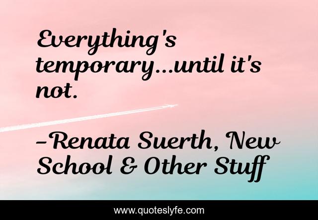"Renata Suerth, New School & Other Stuff Quotes." Quoteslyfe.com, 2025. Fri. 05 Dec. 2025. <https://www.quoteslyfe.com/quote/Everything-s-temporary-until-it-s-not-208694>.