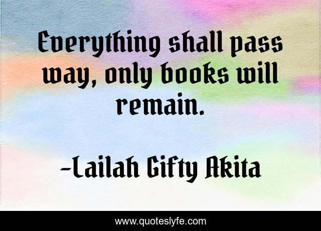 "Lailah Gifty Akita Quotes." Quoteslyfe.com, 2025. Sat. 06 Dec. 2025. <https://www.quoteslyfe.com/quote/Everything-shall-pass-way-only-books-will-207504>.