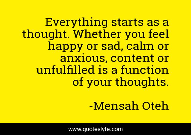 Everything starts as a thought. Whether you feel happy or sad, calm or anxious, content or unfulfilled is a function of your thoughts.