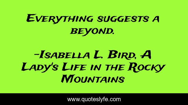 "Isabella L. Bird, A Lady's Life in the Rocky Mountains Quotes." Quoteslyfe.com, 2025. Fri. 05 Dec. 2025. <https://www.quoteslyfe.com/quote/Everything-suggests-a-beyond-137346>.