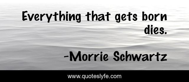 This page presents the quote "Everything that gets born dies.". Author of this quote is Morrie Schwartz. This quote is about born, everything, dies,.