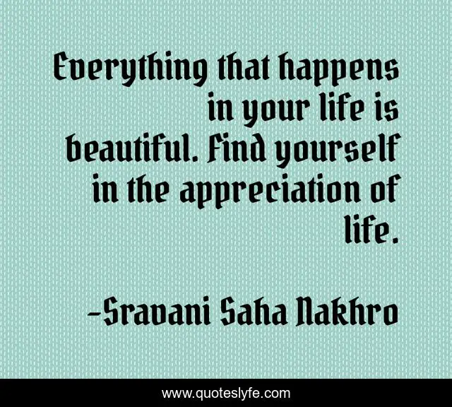 This page presents the quote "Everything that happens in your life is beautiful. Find yourself in the appreciation of life.". Author of this quote is Sravani Saha Nakhro. .