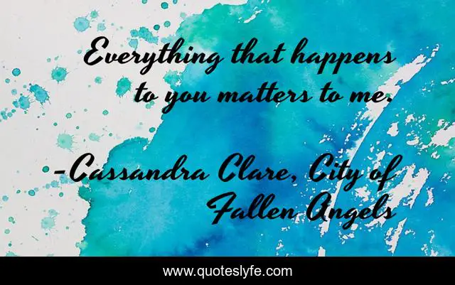 This page presents the quote "Everything that happens to you matters to me.". Author of this quote is Cassandra Clare, City of Fallen Angels. This quote is about love, clary-fray, teens, jace, affection, care,.