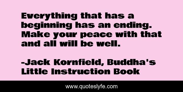 This page presents the quote "Everything that has a beginning has an ending. Make your peace with that and all will be well.". Author of this quote is Jack Kornfield, Buddha's Little Instruction Book. This quote is about acceptance, beginning, peace, ending,.