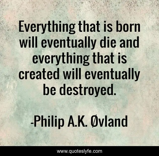 "Philip A.K. Øvland Quotes." Quoteslyfe.com, 2025. Sat. 06 Dec. 2025. <https://www.quoteslyfe.com/quote/Everything-that-is-born-will-eventually-die-241669>.