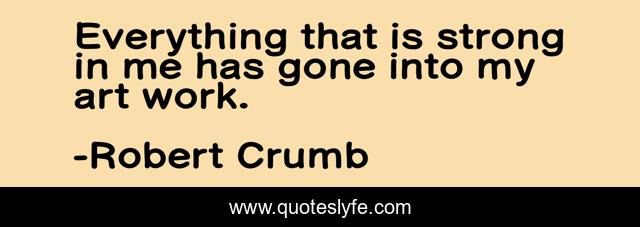 This page presents the quote "Everything that is strong in me has gone into my art work.". Author of this quote is Robert Crumb. This quote is about me, work, strong,.