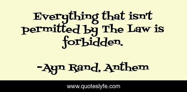 This page presents the quote "Everything that isn't permitted by The Law is forbidden.". Author of this quote is Ayn Rand, Anthem. .