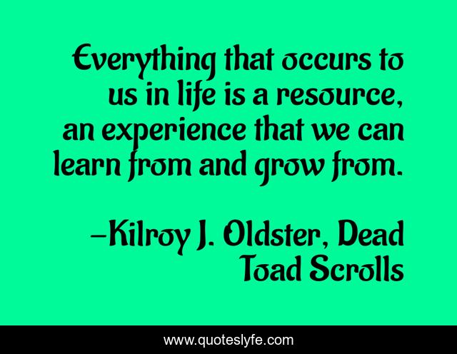 "Kilroy J. Oldster, Dead Toad Scrolls Quotes." Quoteslyfe.com, 2025. Mon. 08 Dec. 2025. <https://www.quoteslyfe.com/quote/Everything-that-occurs-to-us-in-life-116865>.
