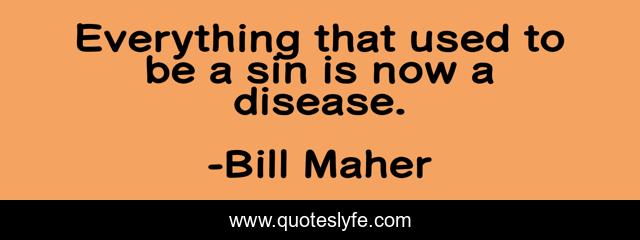 This page presents the quote "Everything that used to be a sin is now a disease.". Author of this quote is Bill Maher. This quote is about everything, now, sin,.