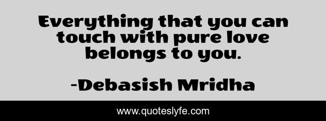This page presents the quote "Everything that you can touch with pure love belongs to you.". Author of this quote is Debasish Mridha. This quote is about love, inspirational, philosophy, debasish-mridha, everything-that-you-can-touch, quotes, pure-love, enthusiasm, debasish-mridha-m-d,.