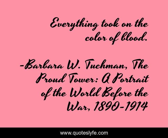 "Barbara W. Tuchman, The Proud Tower: A Portrait of the World Before the War, 1890-1914 Quotes." Quoteslyfe.com, 2025. Fri. 05 Dec. 2025. <https://www.quoteslyfe.com/quote/Everything-took-on-the-color-of-blood-161472>.