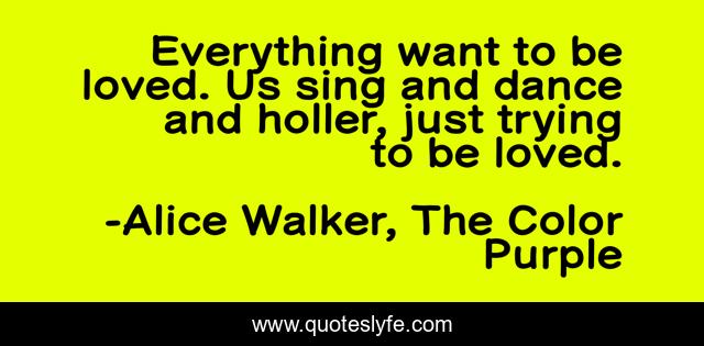 This page presents the quote "Everything want to be loved. Us sing and dance and holler, just trying to be loved.". Author of this quote is Alice Walker, The Color Purple. This quote is about love, affection,.