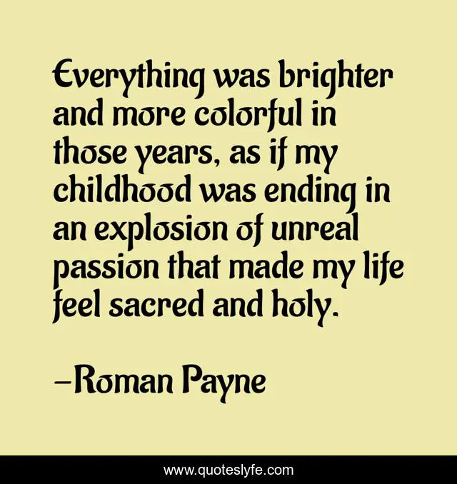 "Roman Payne Quotes." Quoteslyfe.com, 2025. Fri. 05 Dec. 2025. <https://www.quoteslyfe.com/quote/Everything-was-brighter-and-more-colorful-in-164554>.