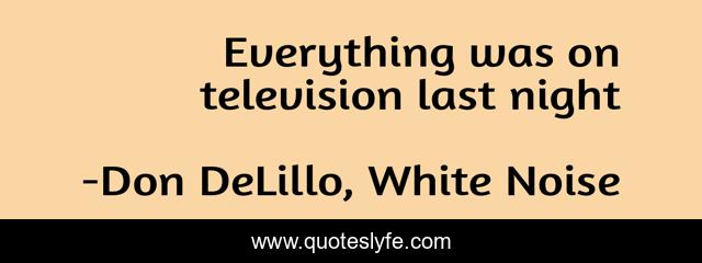 "Don DeLillo, White Noise Quotes." Quoteslyfe.com, 2025. Sat. 06 Dec. 2025. <https://www.quoteslyfe.com/quote/Everything-was-on-television-last-night-245079>.