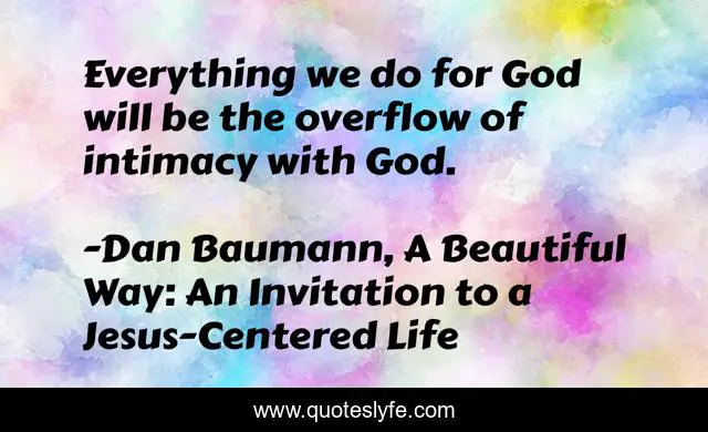 This page presents the quote "Everything we do for God will be the overflow of intimacy with God.". Author of this quote is Dan Baumann, A Beautiful Way: An Invitation to a Jesus-Centered Life. .