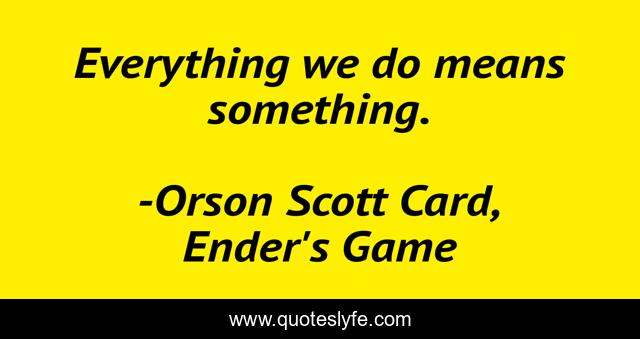 This page presents the quote "Everything we do means something.". Author of this quote is Orson Scott Card, Ender's Game. .