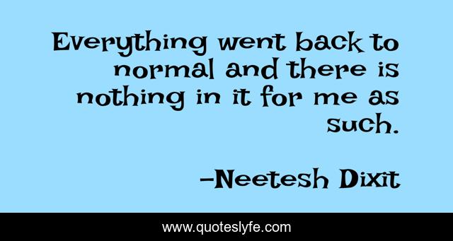 This page presents the quote "Everything went back to normal and there is nothing in it for me as such.". Author of this quote is Neetesh Dixit. This quote is about life, philosophy-of-life, life-lessons,.
