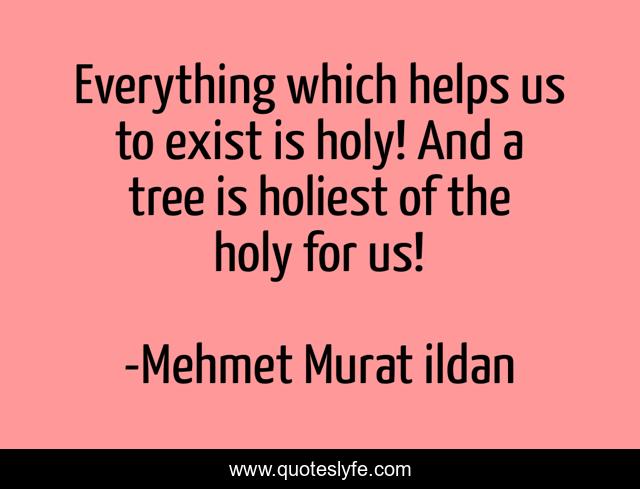 This page presents the quote "Everything which helps us to exist is holy! And a tree is holiest of the holy for us!". Author of this quote is Mehmet Murat ildan. This quote is about mehmet-murat-ildan, holy, tree, forests, forest, existence,.