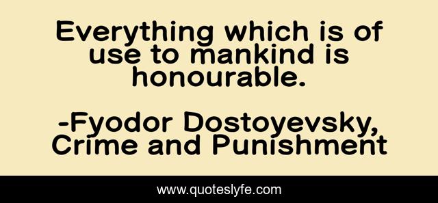 This page presents the quote "Everything which is of use to mankind is honourable.". Author of this quote is Fyodor Dostoyevsky, Crime and Punishment. This quote is about honour, purpose-in-life, purpose, life-philosophy, honorable, honor,.