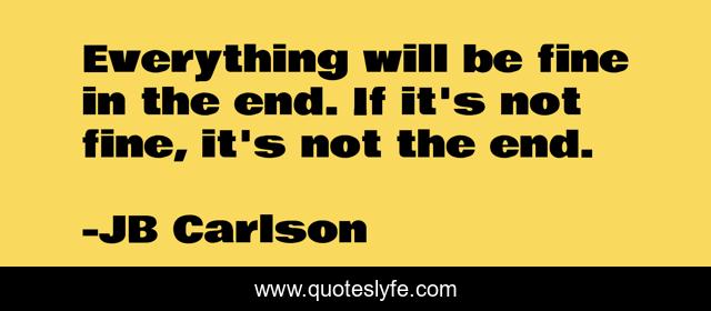 This page presents the quote "Everything will be fine in the end. If it's not fine, it's not the end.". Author of this quote is JB Carlson. This quote is about power, mindset,.