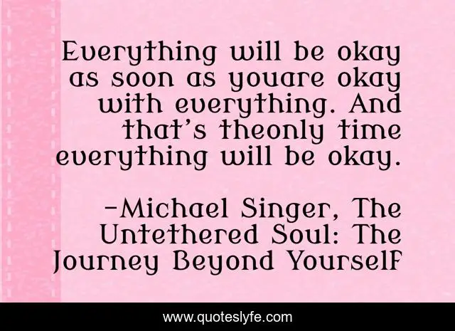 "Michael Singer, The Untethered Soul: The Journey Beyond Yourself Quotes." Quoteslyfe.com, 2025. Sat. 06 Dec. 2025. <https://www.quoteslyfe.com/quote/Everything-will-be-okay-as-soon-as-172000>.