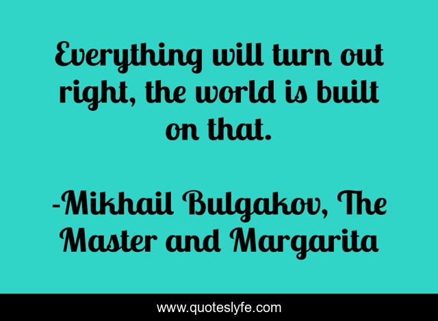 "Mikhail Bulgakov, The Master and Margarita Quotes." Quoteslyfe.com, 2025. Mon. 08 Dec. 2025. <https://www.quoteslyfe.com/quote/Everything-will-turn-out-right-the-world-4163>.