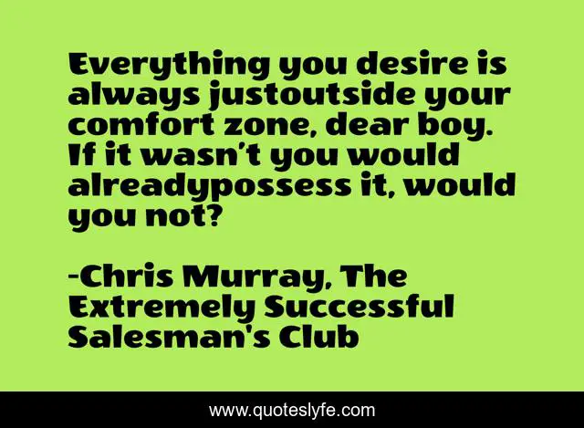 "Chris Murray, The Extremely Successful Salesman's Club Quotes." Quoteslyfe.com, 2025. Mon. 08 Dec. 2025. <https://www.quoteslyfe.com/quote/Everything-you-desire-is-always-justoutside-your-251227>.