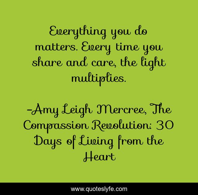 "Amy Leigh Mercree, The Compassion Revolution: 30 Days of Living from the Heart Quotes." Quoteslyfe.com, 2025. Mon. 08 Dec. 2025. <https://www.quoteslyfe.com/quote/Everything-you-do-matters-Every-time-you-15177>.