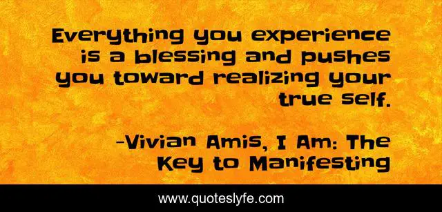 This page presents the quote "Everything you experience is a blessing and pushes you toward realizing your true self.". Author of this quote is Vivian Amis, I Am: The Key to Manifesting. This quote is about i-am, living, life, peace, love, happiness, success, money, self,.