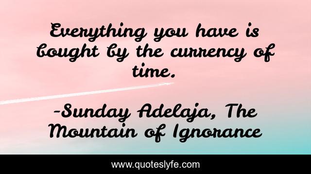 This page presents the quote "Everything you have is bought by the currency of time.". Author of this quote is Sunday Adelaja, The Mountain of Ignorance. This quote is about purchase, great, productivity, wealth, gift, work, life, convert, value,.