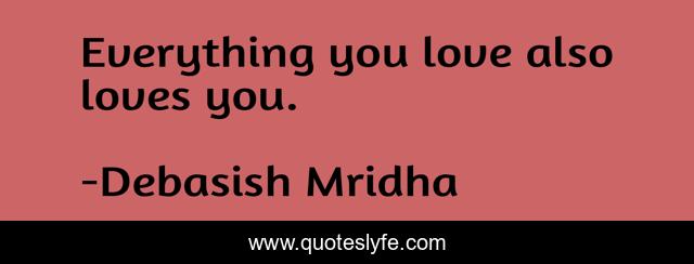This page presents the quote "Everything you love also loves you.". Author of this quote is Debasish Mridha. This quote is about everything-you-love, love, what-loves-you, philosophy, debasish-mridha, quotes, inspirational, enthusiasm, debasish-mridha-m-d,.