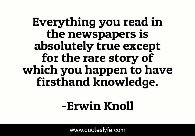 This page presents the quote "Everything you read in the newspapers is absolutely true except for the rare story of which you happen to have firsthand knowledge.". Author of this quote is Erwin Knoll. This quote is about journalism, propaganda, truth,.