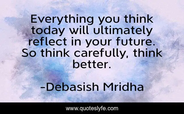 "Debasish Mridha Quotes." Quoteslyfe.com, 2025. Sun. 07 Dec. 2025. <https://www.quoteslyfe.com/quote/Everything-you-think-today-will-ultimately-reflect-74087>.