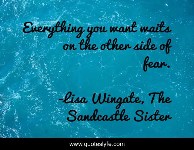 This page presents the quote "Everything you want waits on the other side of fear.". Author of this quote is Lisa Wingate, The Sandcastle Sister. This quote is about wants, fear,.