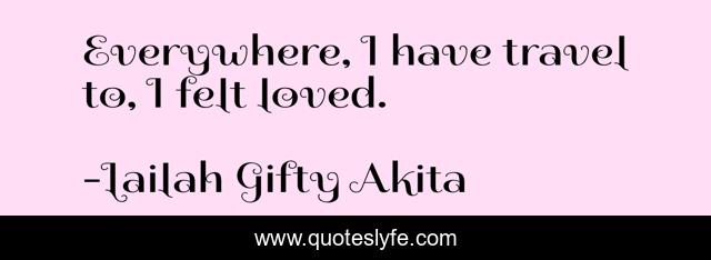 This page presents the quote "Everywhere, I have travel to, I felt loved.". Author of this quote is Lailah Gifty Akita. This quote is about travel, journey, places,.